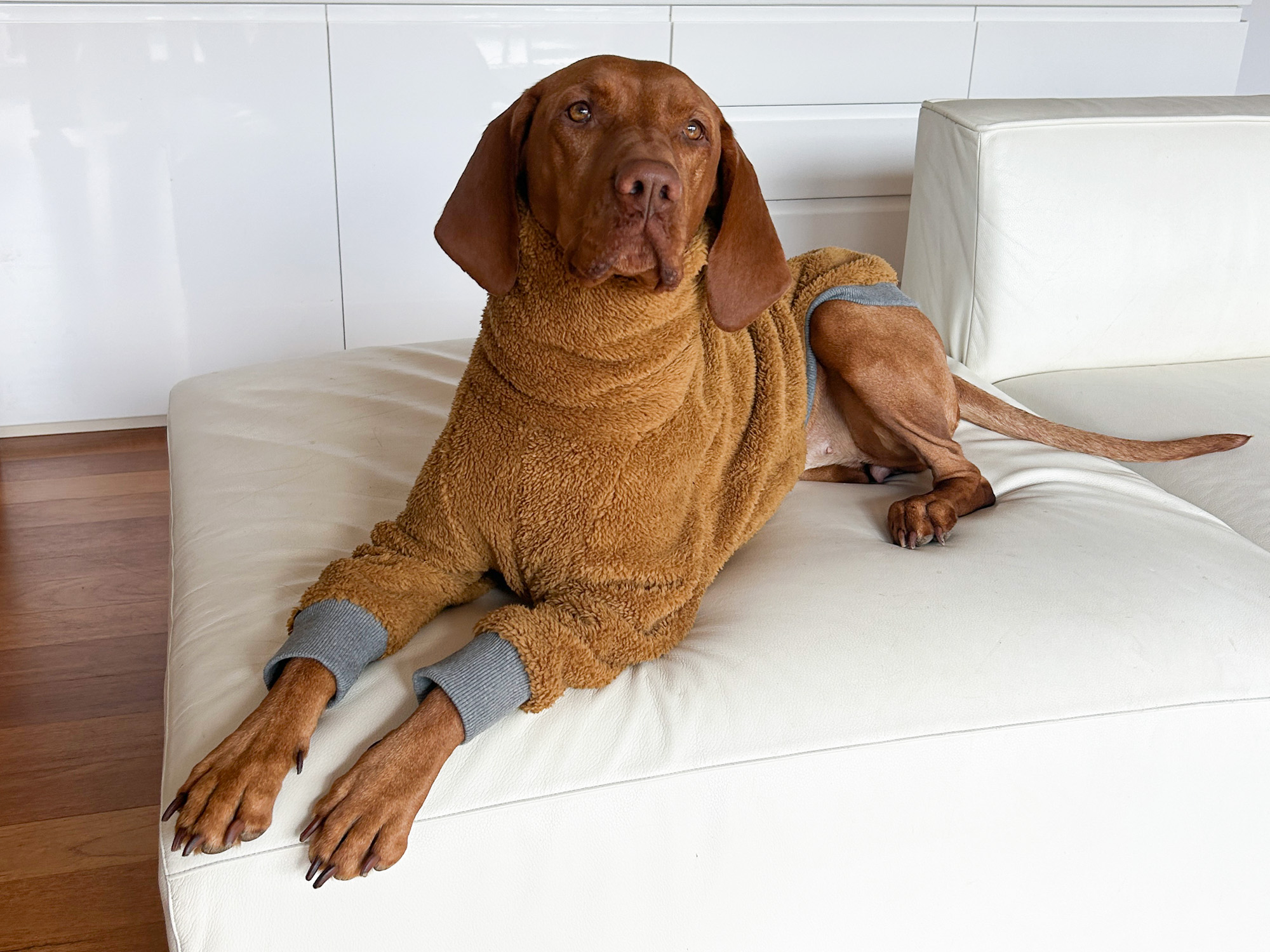 Sizes are specific to dogs with similar constitutions as the dog in the pictures (Vizsla, Weimaraner, Pointer).