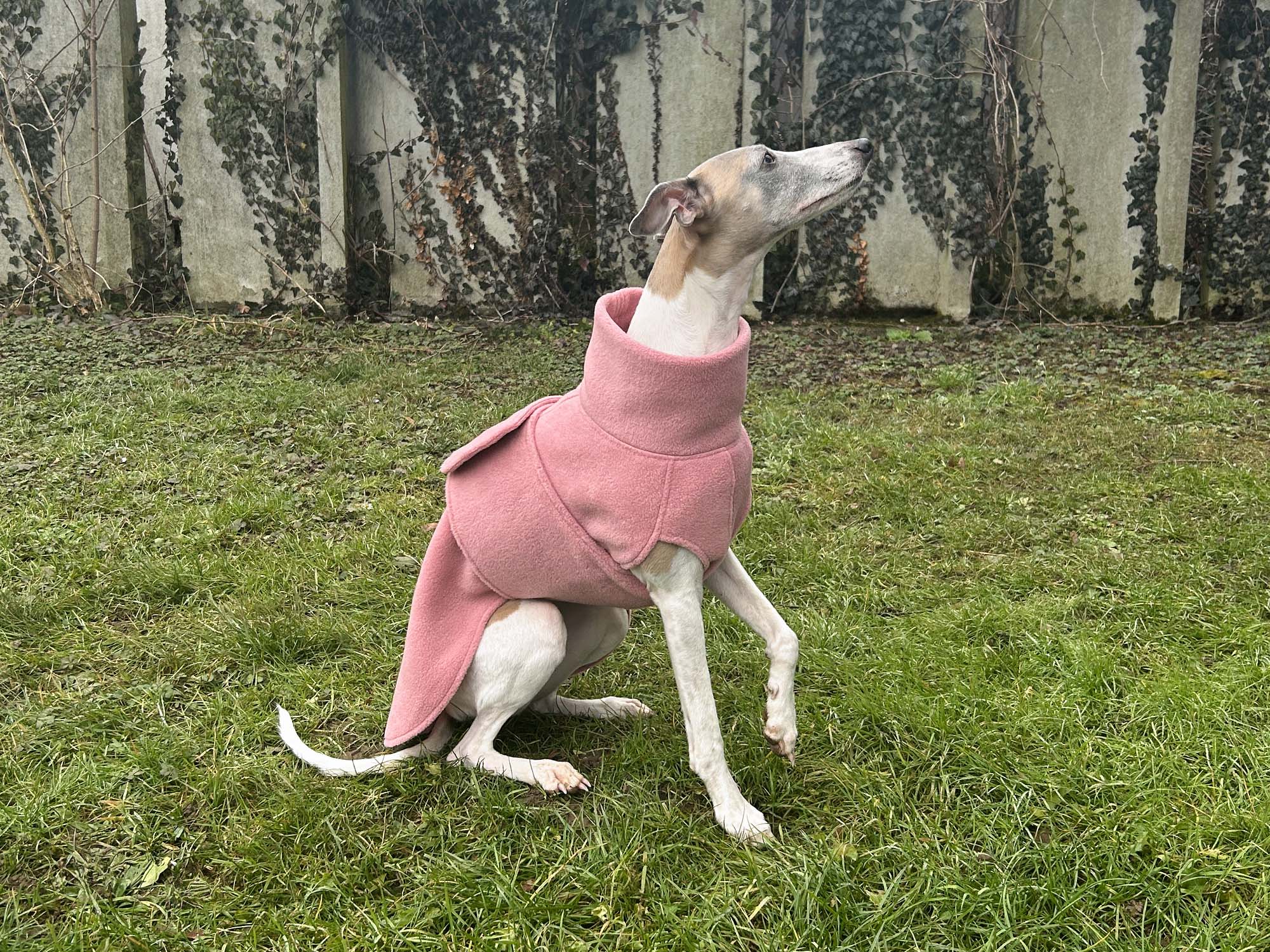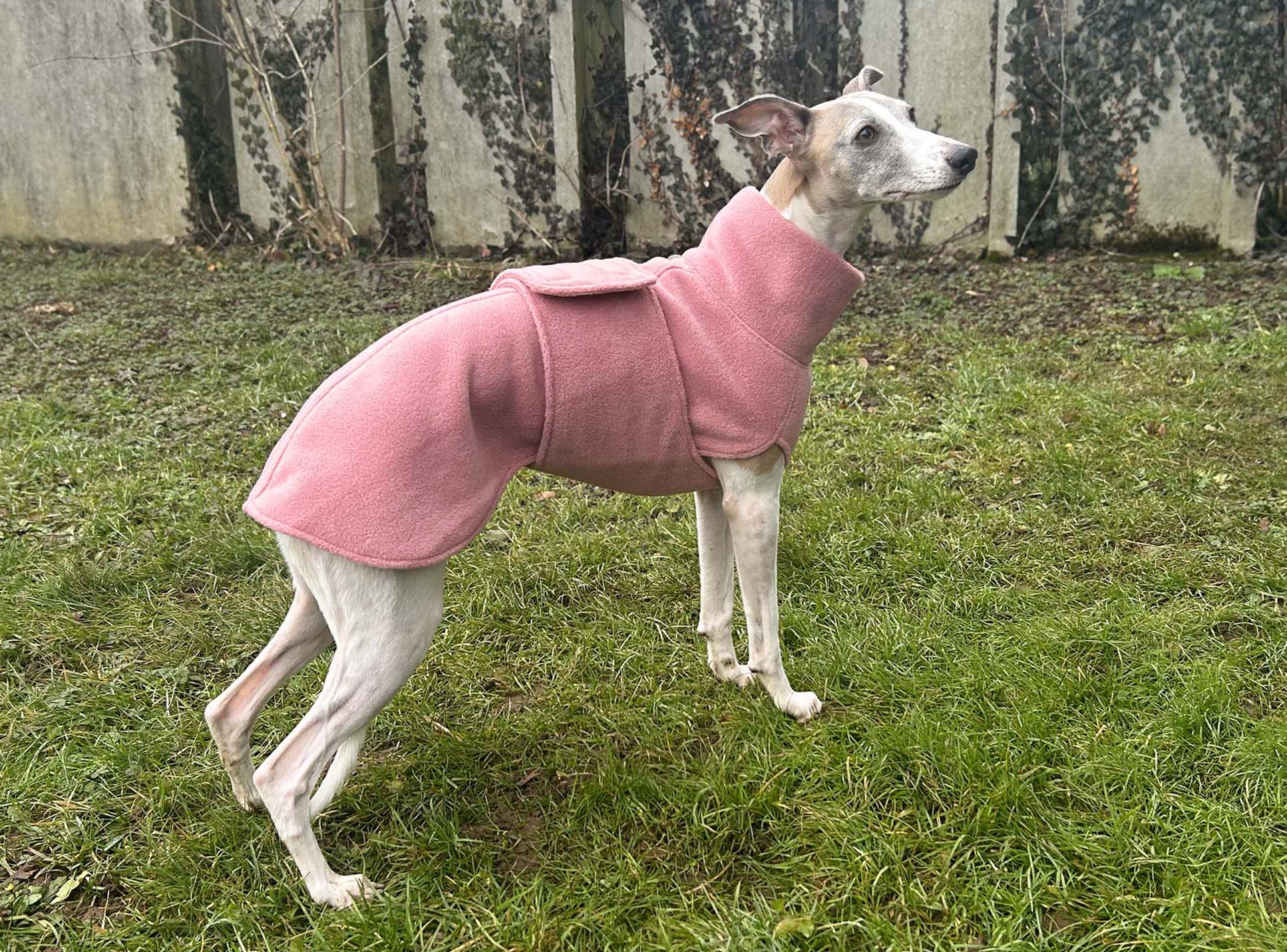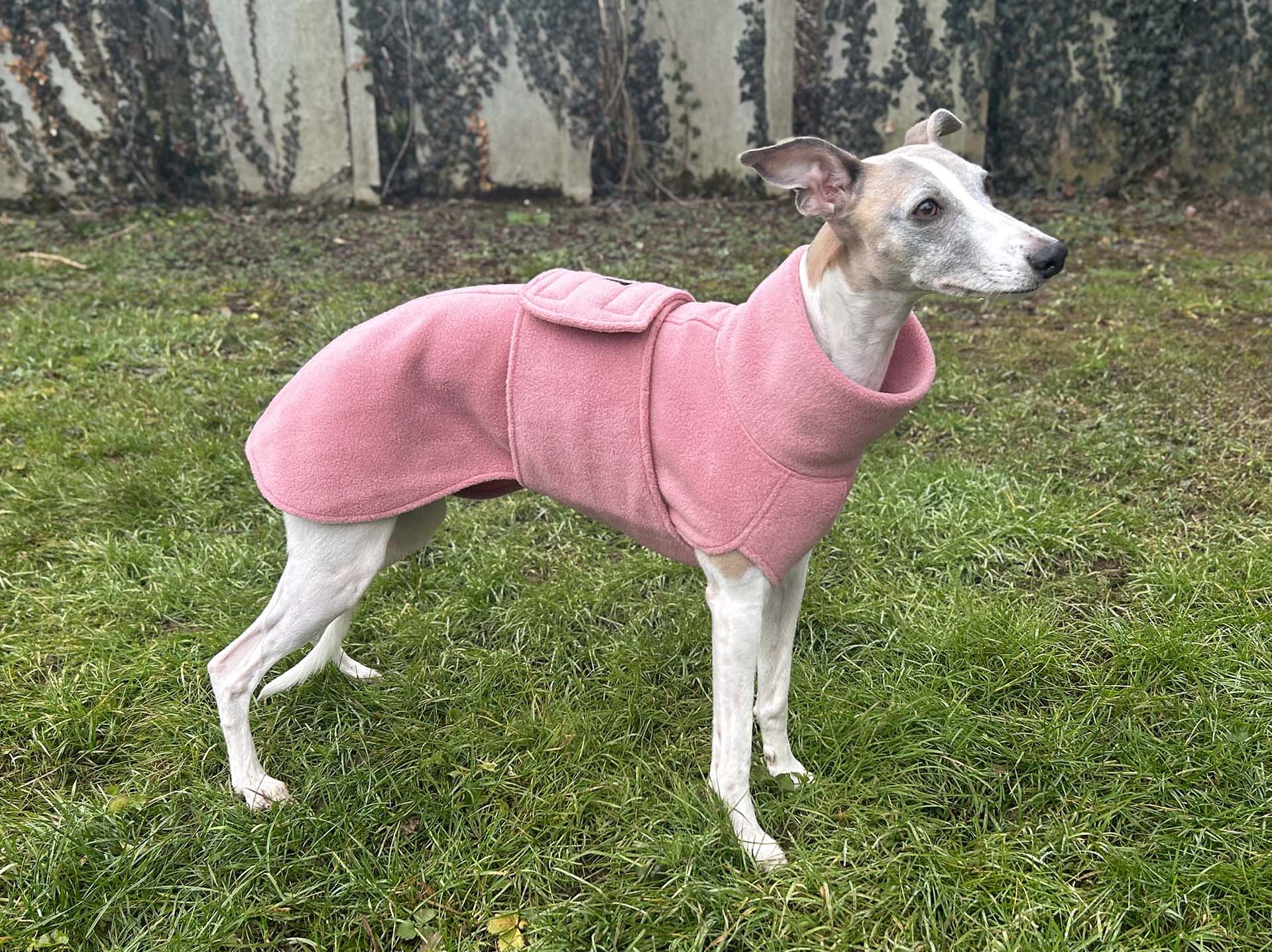 Whippet Fleece Coat crafted from soft polar fleece. Ideal for spring and autumn wear, featuring easy fastening. Sizes made for Whippet body shapes.